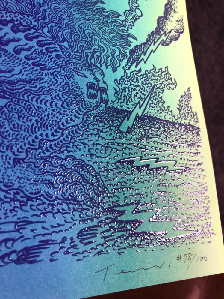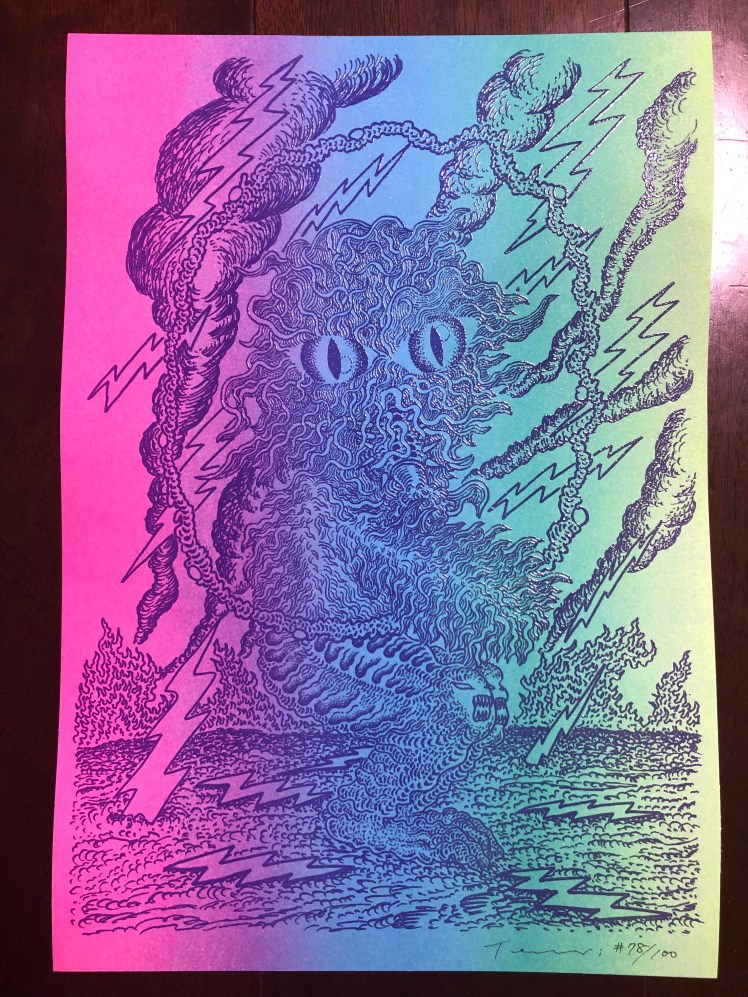 Special 70s revival gig poster was requested by Gary Panter for his hippybilly headshop exhibition💥 It’s available at Rozz Tox Art in Florence MA, also in my webshop. Screen Printed by Tom Toye🛸 (For Christmas shoppers, plz upgrade shipping method, otherwise it won’t arrive before 24th)