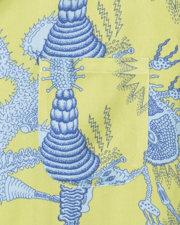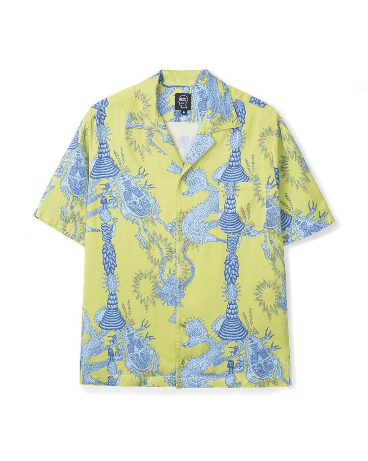 Rayon hawaiian shirts with @wearebraindead is available on BD online shop and @doverstreetmarketlosangeles @doverstreetmarketnewyork 🤝👽🤝 Big up to @farmtactics @theheavymental for mental collab💥